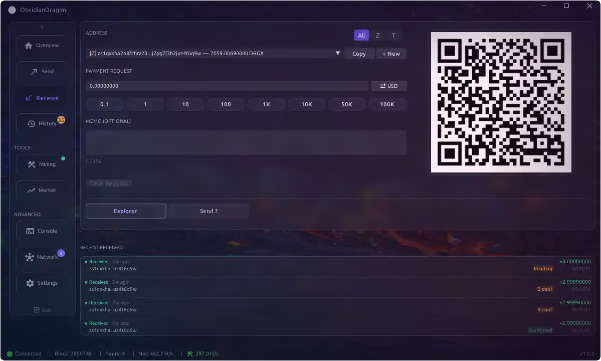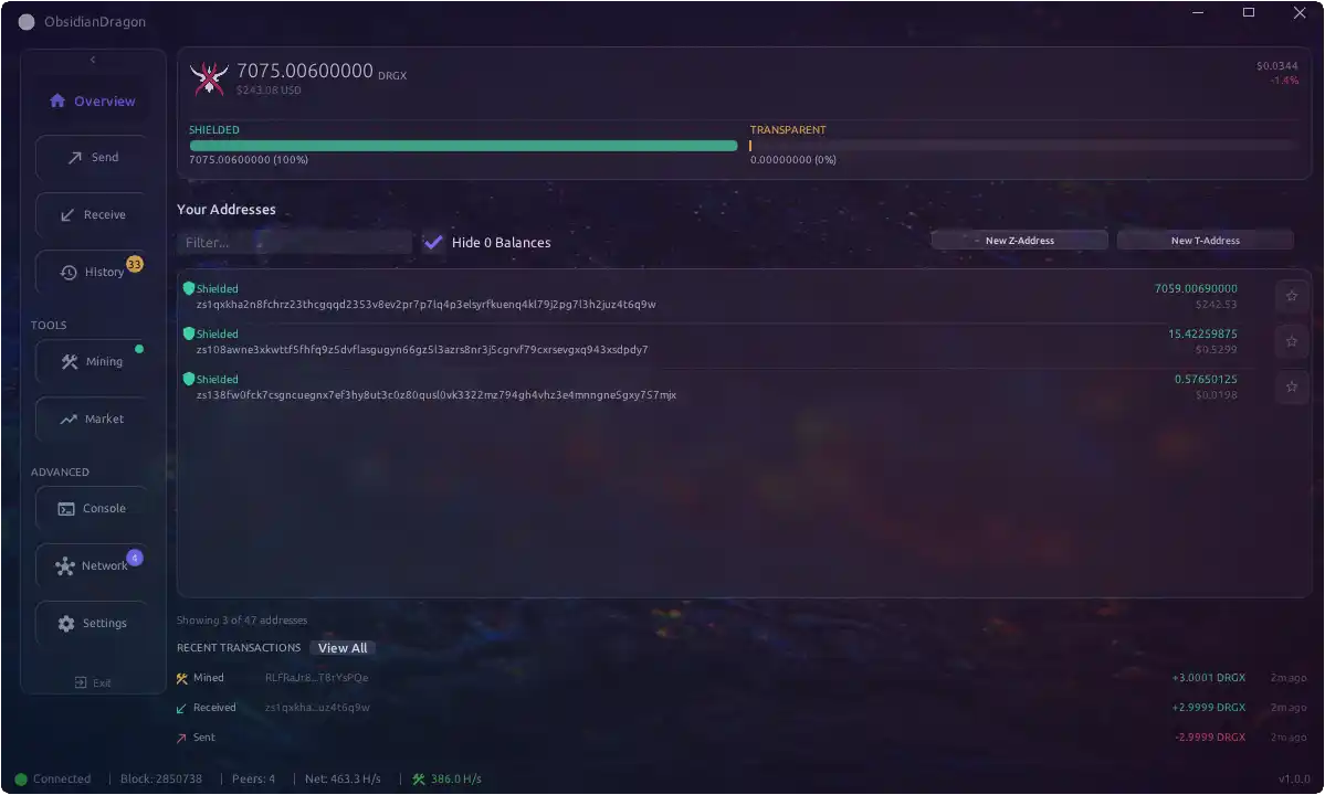 - Full Node Support: Connects to dragonxd for complete blockchain verification