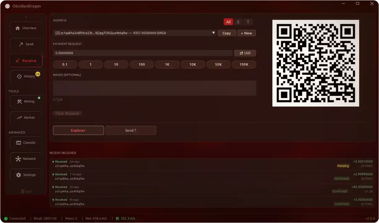 - **QR Codes**: Generate and display QR codes for receiving addresses