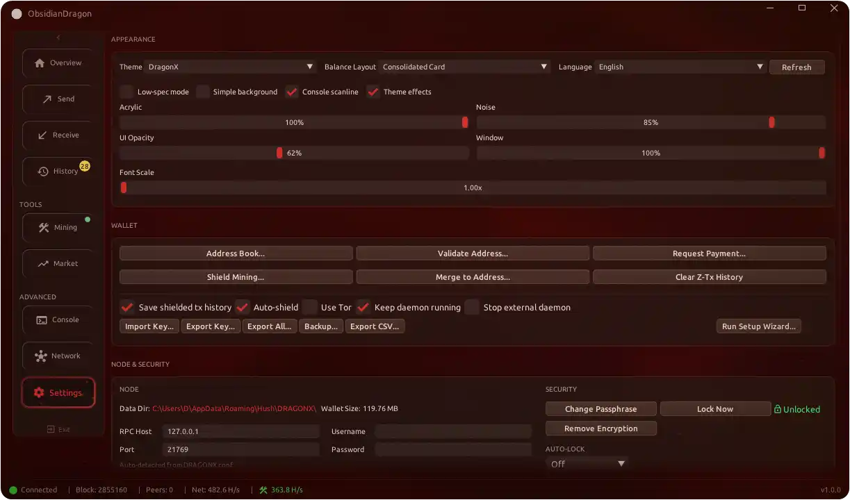 A lightweight, portable cryptocurrency wallet for DragonX (DRGX), built with Dear ImGui.