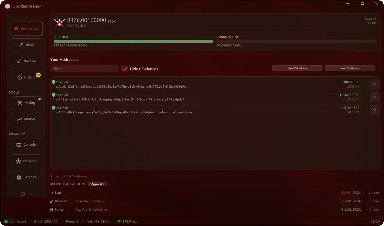 - Full Node Support: Connects to dragonxd for complete blockchain verification