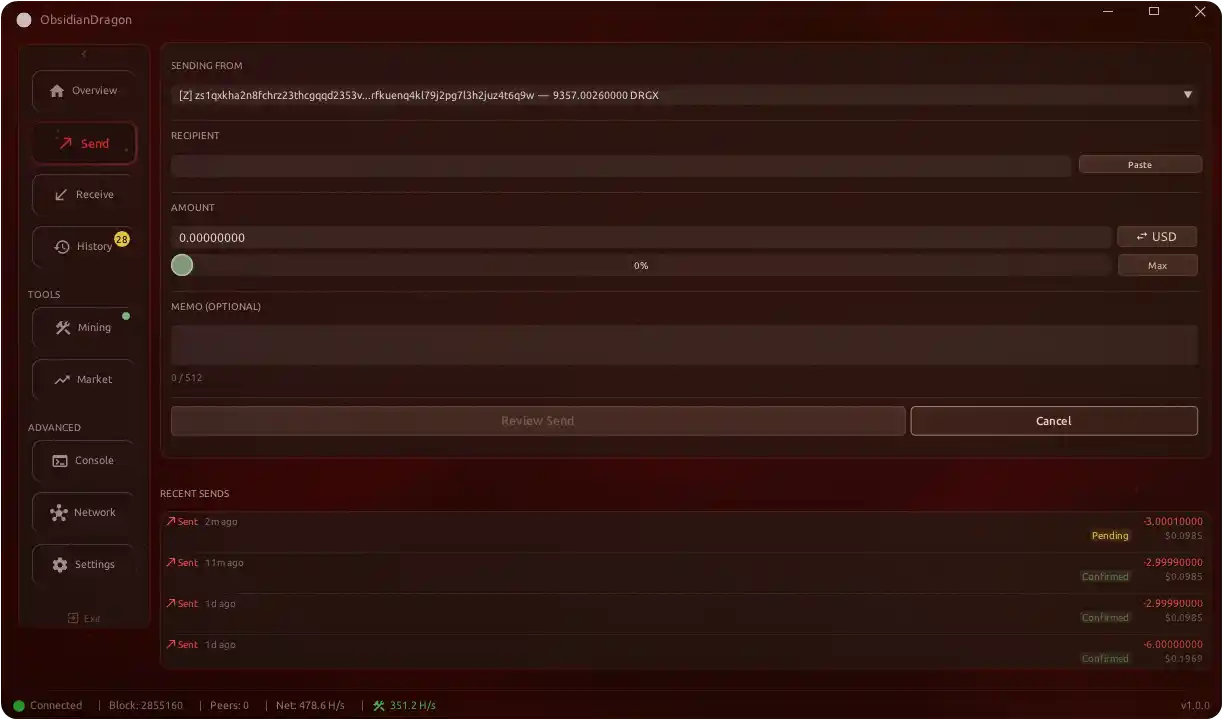 • Full Node Support: Connects to dragonxd for complete blockchain verification